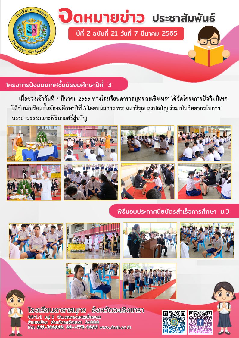 หน้าแรก ข่าวกิจกรรม พิธีมอบประกาศนียบัตรและปัจฉิมนิเทศ ม.3 ข่าวกิจกรรม พิธีมอบประกาศนียบัตรและปัจฉิมนิเทศ ม.3 โดย โรงเรียนดาราสมุทร ฉะเชิงเทรา - 7 มีนาคม 2565 1265 0 บทความที่เกี่ยวข้องเพิ่มเติมจากผู้เขียน ร่วมงานนมัสการหลวงพ่อโสธร 2567 กิจกรรมวันเฉลิมพระชนมพรรษา สมเด็จพระพันปีหลวง และวันแม่แห่งชาติ กิจกรรมวันเฉลิมพระชนมพรรษา พระบาทสมเด็จพระวชิรเกล้า เจ้าอยู่หัว ข่าวประชาสัมพันธ์ [ล่าสุด] การประชุมผู้บริหารโรงเรียนเอกชน จังหวัดฉะเชิงเทรา 18 ธันวาคม 2567 ตารางสอบกลางภาคเรียนที่ 1/2567 9 กรกฎาคม 2567 ข่าวกิจกรรม [ล่าสุด] ร่วมงานนมัสการหลวงพ่อโสธร 2567 19 พฤศจิกายน 2567 กิจกรรมวันเฉลิมพระชนมพรรษา สมเด็จพระพันปีหลวง และวันแม่แห่งชาติ 9 สิงหาคม 2567