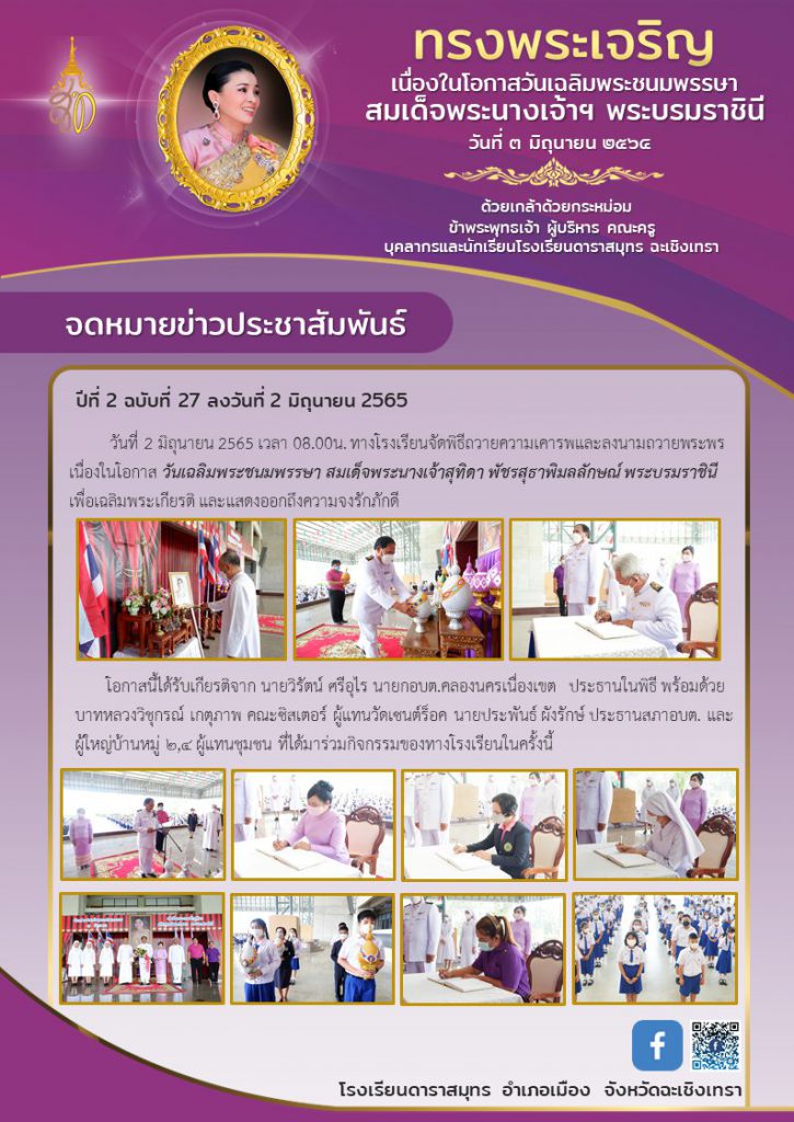 หน้าแรก ข่าวกิจกรรม กิจกรรมวันเฉลิมพระชนมพรรษา สมเด็จพระนางเจ้าฯพระบรมราชินี ข่าวกิจกรรม กิจกรรมวันเฉลิมพระชนมพรรษา สมเด็จพระนางเจ้าฯพระบรมราชินี โดย โรงเรียนดาราสมุทร ฉะเชิงเทรา - 2 มิถุนายน 2565 1202 0 คลิก เพื่อดูภาพเพิ่มเติม บทความที่เกี่ยวข้องเพิ่มเติมจากผู้เขียน ร่วมงานนมัสการหลวงพ่อโสธร 2567 กิจกรรมวันเฉลิมพระชนมพรรษา สมเด็จพระพันปีหลวง และวันแม่แห่งชาติ กิจกรรมวันเฉลิมพระชนมพรรษา พระบาทสมเด็จพระวชิรเกล้า เจ้าอยู่หัว ข่าวประชาสัมพันธ์ [ล่าสุด] การประชุมผู้บริหารโรงเรียนเอกชน จังหวัดฉะเชิงเทรา 18 ธันวาคม 2567 ตารางสอบกลางภาคเรียนที่ 1/2567 9 กรกฎาคม 2567 ข่าวกิจกรรม [ล่าสุด] ร่วมงานนมัสการหลวงพ่อโสธร 2567 19 พฤศจิกายน 2567 กิจกรรมวันเฉลิมพระชนมพรรษา สมเด็จพระพันปีหลวง และวันแม่แห่งชาติ 9 สิงหาคม 2567
