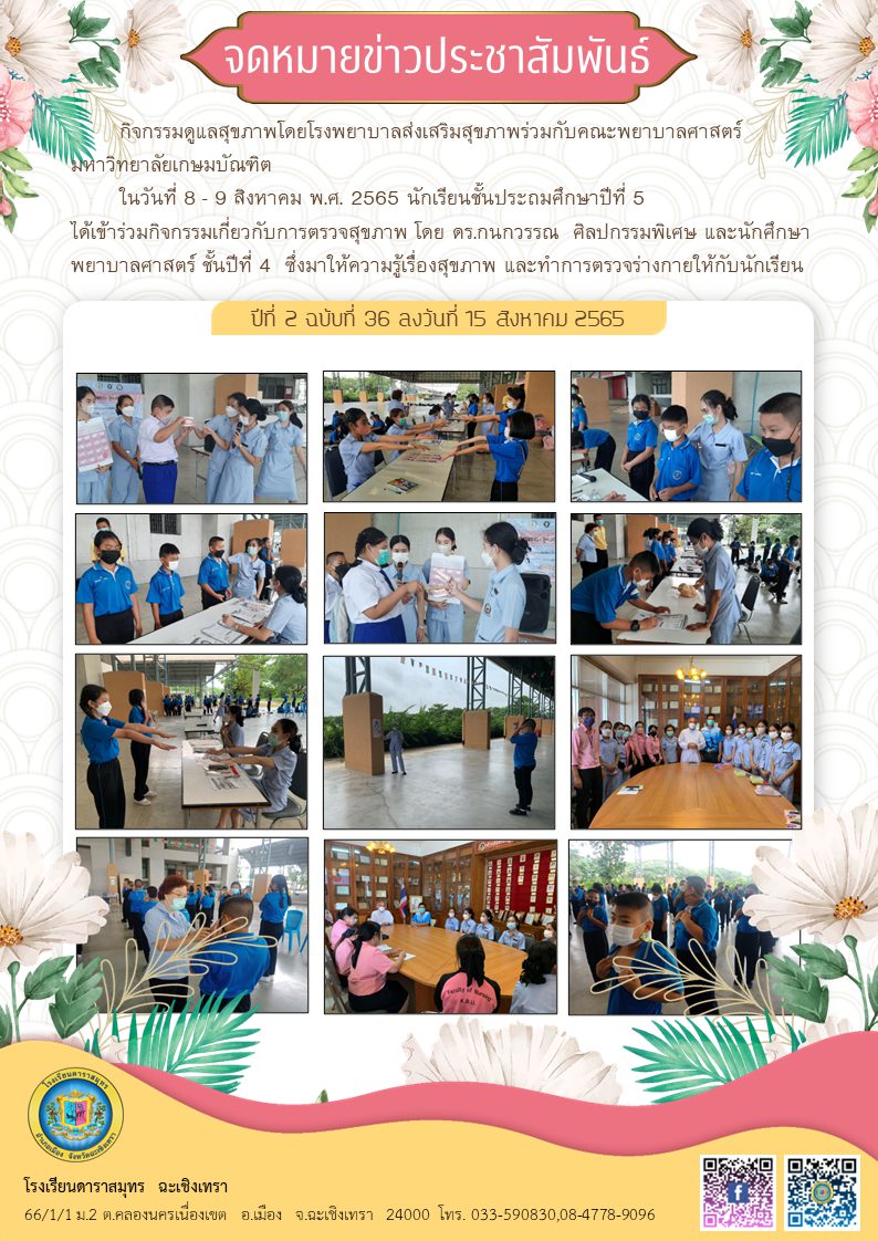 หน้าแรก ข่าวกิจกรรม กิจกรรมให้ความรู้และตรวจสุขภาพ นักเรียน ป.5 ข่าวกิจกรรม กิจกรรมให้ความรู้และตรวจสุขภาพ นักเรียน ป.5 โดย โรงเรียนดาราสมุทร ฉะเชิงเทรา - 15 สิงหาคม 2565 1358 0 บทความที่เกี่ยวข้องเพิ่มเติมจากผู้เขียน ร่วมงานนมัสการหลวงพ่อโสธร 2567 กิจกรรมวันเฉลิมพระชนมพรรษา สมเด็จพระพันปีหลวง และวันแม่แห่งชาติ กิจกรรมวันเฉลิมพระชนมพรรษา พระบาทสมเด็จพระวชิรเกล้า เจ้าอยู่หัว ข่าวประชาสัมพันธ์ [ล่าสุด] การประชุมผู้บริหารโรงเรียนเอกชน จังหวัดฉะเชิงเทรา 18 ธันวาคม 2567 ตารางสอบกลางภาคเรียนที่ 1/2567 9 กรกฎาคม 2567 ข่าวกิจกรรม [ล่าสุด] ร่วมงานนมัสการหลวงพ่อโสธร 2567 19 พฤศจิกายน 2567 กิจกรรมวันเฉลิมพระชนมพรรษา สมเด็จพระพันปีหลวง และวันแม่แห่งชาติ 9 สิงหาคม 2567