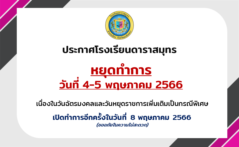 หน้าแรก ข่าวประชาสัมพันธ์ ประกาศหยุดทำการ ข่าวประชาสัมพันธ์ ประกาศหยุดทำการ โดย โรงเรียนดาราสมุทร ฉะเชิงเทรา - 3 พฤษภาคม 2566 1153 0 บทความที่เกี่ยวข้องเพิ่มเติมจากผู้เขียน การประชุมผู้บริหารโรงเรียนเอกชน จังหวัดฉะเชิงเทรา ตารางสอบกลางภาคเรียนที่ 1/2567 การตรวจติดตามเงินอุดหนุนฯ 2567 ข่าวประชาสัมพันธ์ [ล่าสุด] การประชุมผู้บริหารโรงเรียนเอกชน จังหวัดฉะเชิงเทรา 18 ธันวาคม 2567 ตารางสอบกลางภาคเรียนที่ 1/2567 9 กรกฎาคม 2567 ข่าวกิจกรรม [ล่าสุด] ร่วมงานนมัสการหลวงพ่อโสธร 2567 19 พฤศจิกายน 2567 กิจกรรมวันเฉลิมพระชนมพรรษา สมเด็จพระพันปีหลวง และวันแม่แห่งชาติ 9 สิงหาคม 2567