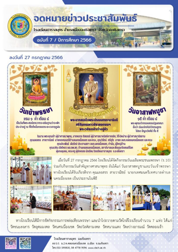 หน้าแรก ข่าวกิจกรรม กิจกรรมวันเฉลิมพระชนมพรรษา ร.10 วันอาสาฬหบูชา วันเข้าพรรษา 2566 ข่าวกิจกรรมข่าวประชาสัมพันธ์ กิจกรรมวันเฉลิมพระชนมพรรษา ร.10 วันอาสาฬหบูชา วันเข้าพรรษา 2566 โดย โรงเรียนดาราสมุทร ฉะเชิงเทรา - 4 สิงหาคม 2566 1263 0 ดูรูปภาพเพิ่มเติม บทความที่เกี่ยวข้องเพิ่มเติมจากผู้เขียน การประชุมผู้บริหารโรงเรียนเอกชน จังหวัดฉะเชิงเทรา ร่วมงานนมัสการหลวงพ่อโสธร 2567 กิจกรรมวันเฉลิมพระชนมพรรษา สมเด็จพระพันปีหลวง และวันแม่แห่งชาติ ข่าวประชาสัมพันธ์ [ล่าสุด] การประชุมผู้บริหารโรงเรียนเอกชน จังหวัดฉะเชิงเทรา 18 ธันวาคม 2567 ตารางสอบกลางภาคเรียนที่ 1/2567 9 กรกฎาคม 2567 ข่าวกิจกรรม [ล่าสุด] ร่วมงานนมัสการหลวงพ่อโสธร 2567 19 พฤศจิกายน 2567 กิจกรรมวันเฉลิมพระชนมพรรษา สมเด็จพระพันปีหลวง และวันแม่แห่งชาติ 9 สิงหาคม 2567