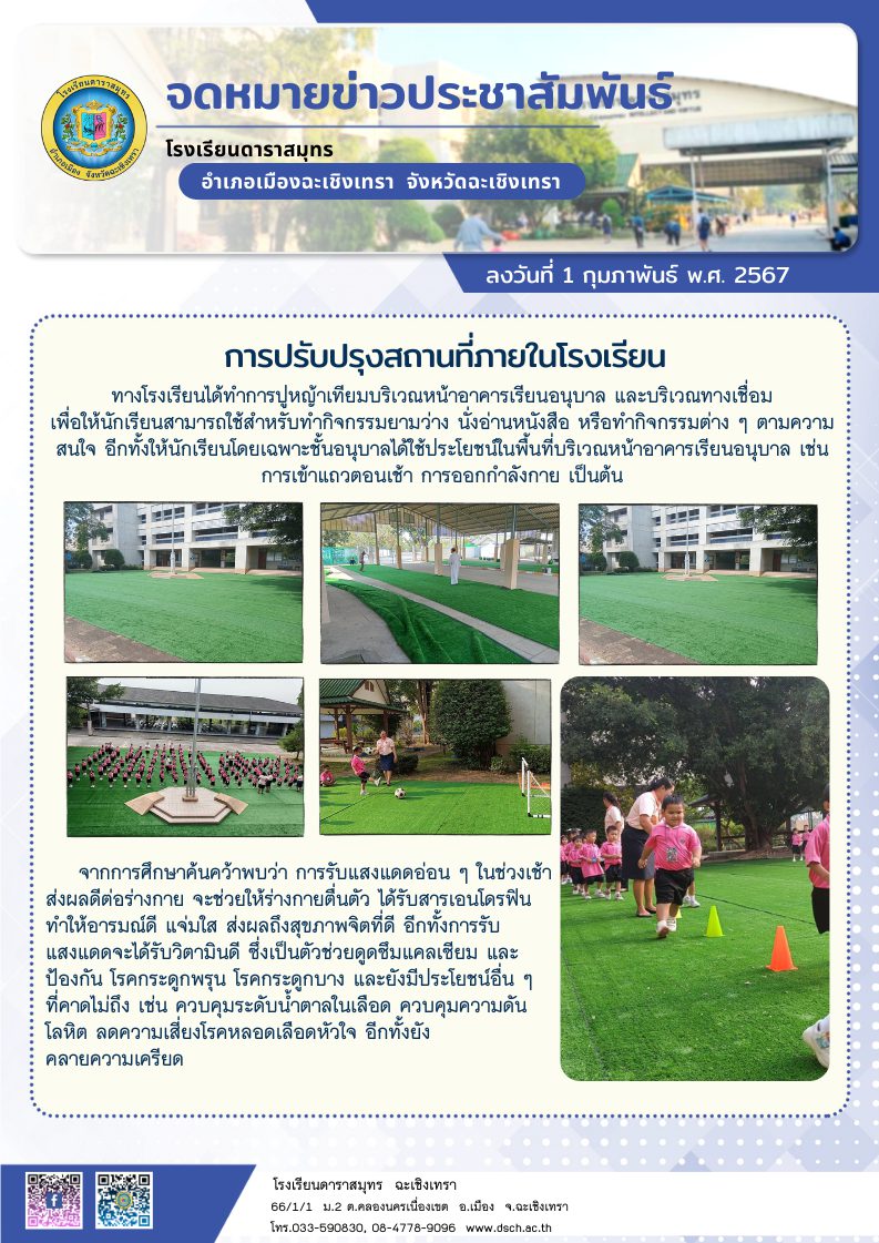 หน้าแรก ข่าวประชาสัมพันธ์ การปรับปรุงสถานที่ภายในโรงเรียน ข่าวประชาสัมพันธ์ การปรับปรุงสถานที่ภายในโรงเรียน โดย โรงเรียนดาราสมุทร ฉะเชิงเทรา - 4 กุมภาพันธ์ 2567 1190 0 บทความที่เกี่ยวข้องเพิ่มเติมจากผู้เขียน การประชุมผู้บริหารโรงเรียนเอกชน จังหวัดฉะเชิงเทรา ตารางสอบกลางภาคเรียนที่ 1/2567 การตรวจติดตามเงินอุดหนุนฯ 2567 ข่าวประชาสัมพันธ์ [ล่าสุด] การประชุมผู้บริหารโรงเรียนเอกชน จังหวัดฉะเชิงเทรา 18 ธันวาคม 2567 ตารางสอบกลางภาคเรียนที่ 1/2567 9 กรกฎาคม 2567 ข่าวกิจกรรม [ล่าสุด] ร่วมงานนมัสการหลวงพ่อโสธร 2567 19 พฤศจิกายน 2567 กิจกรรมวันเฉลิมพระชนมพรรษา สมเด็จพระพันปีหลวง และวันแม่แห่งชาติ 9 สิงหาคม 2567