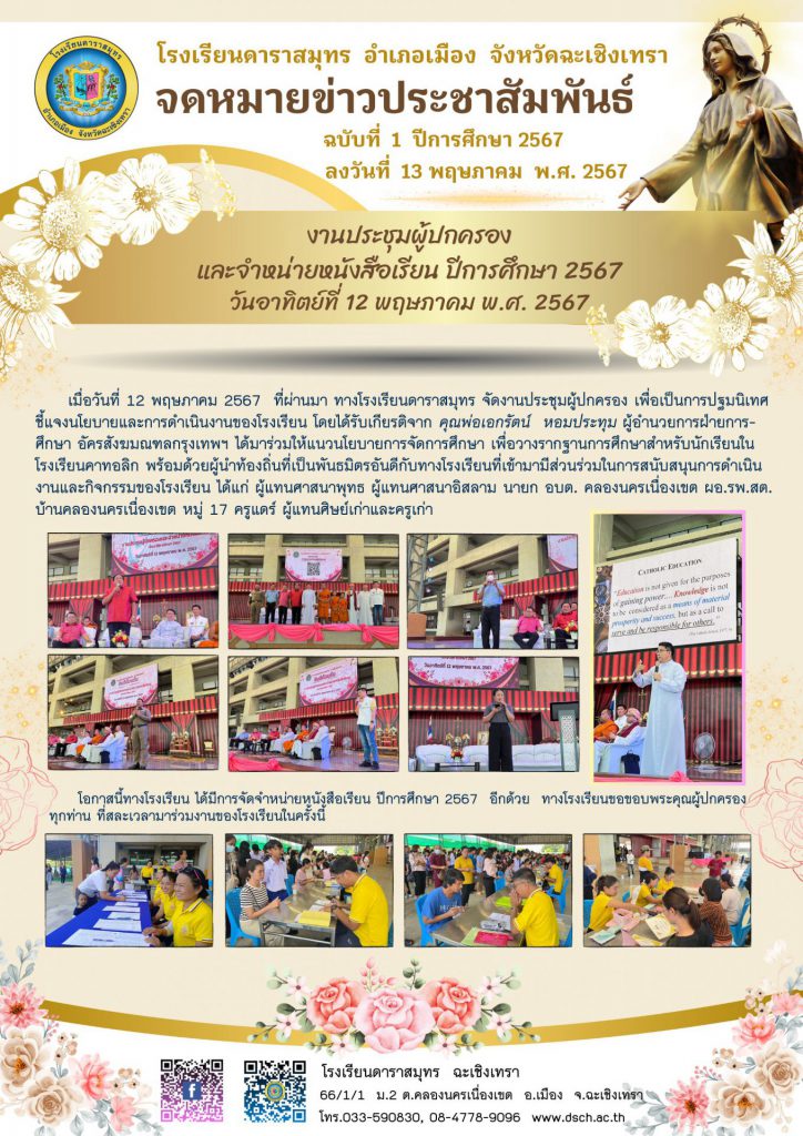 หน้าแรก ข่าวกิจกรรม งานประชุมผู้ปกครองและจำหน่ายหนังสือเรียน ปีการศึกษา 2567 ข่าวกิจกรรม งานประชุมผู้ปกครองและจำหน่ายหนังสือเรียน ปีการศึกษา 2567 โดย โรงเรียนดาราสมุทร ฉะเชิงเทรา - 13 พฤษภาคม 2567 1111 0 ดูภาพเพิ่มเติม บทความที่เกี่ยวข้องเพิ่มเติมจากผู้เขียน ร่วมงานนมัสการหลวงพ่อโสธร 2567 กิจกรรมวันเฉลิมพระชนมพรรษา สมเด็จพระพันปีหลวง และวันแม่แห่งชาติ กิจกรรมวันเฉลิมพระชนมพรรษา พระบาทสมเด็จพระวชิรเกล้า เจ้าอยู่หัว ข่าวประชาสัมพันธ์ [ล่าสุด] การประชุมผู้บริหารโรงเรียนเอกชน จังหวัดฉะเชิงเทรา 18 ธันวาคม 2567 ตารางสอบกลางภาคเรียนที่ 1/2567 9 กรกฎาคม 2567 ข่าวกิจกรรม [ล่าสุด] ร่วมงานนมัสการหลวงพ่อโสธร 2567 19 พฤศจิกายน 2567 กิจกรรมวันเฉลิมพระชนมพรรษา สมเด็จพระพันปีหลวง และวันแม่แห่งชาติ 9 สิงหาคม 2567