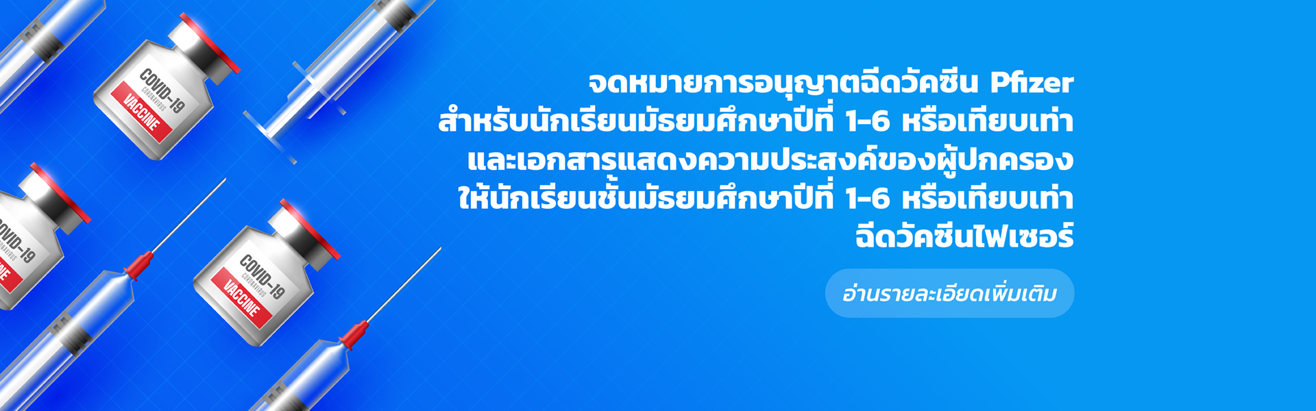 หน้าแรก ข่าวประชาสัมพันธ์ จดหมายการอนุญาตฉีดวัคซีน Pfizer สำหรับนักเรียนมัธยมศึกษาปีที่ 1-6 หรือเทียบเท่าและเอกสารแสดงความประสงค์ของผู้ปกครอง